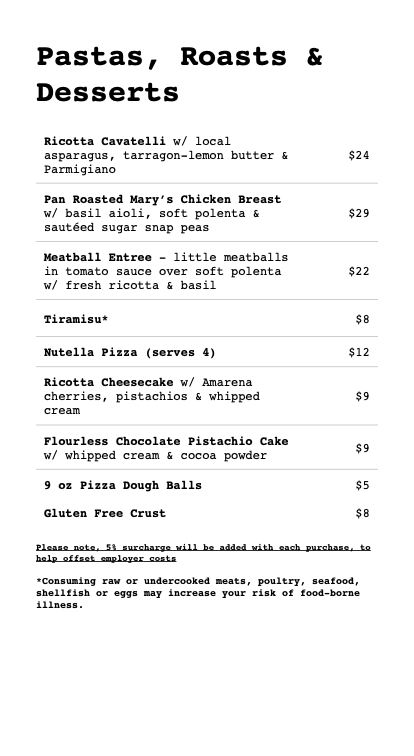 Our full menu is available online daily and you can choose your pickup time slot for same day pick up.